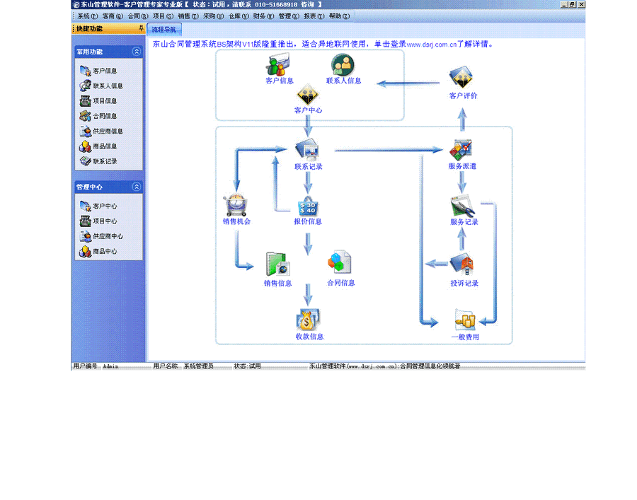 完善的客户管理是公司健康运作的一个重要标志。然而,完善的客户管理需要公司许多的资源,如何简化管理而不失其完整、科学是许多公司头痛的问题。秉承“为中小企业服务”的宗旨,潜心研究开发了《客户管理专家PCMExpert》,有效的解决了简单易用和功能强大的矛盾,完美的结合WORD、EXCEL、ACCESS软件,保护用户的投资,做到半小时可以用顺手。并且,结合中国公司的实际情况,将客户管理和项目管理融合管理,真正体现优化公司资源的目的。统计功能使用拖放字段的方式即可实现不同的统计。真正简化了烦琐的统计过程,而且非常高效。