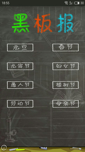 黑板报主要包括39个常用热门主题(例如:开学了、植树节、劳动节、母亲节、元旦……),每个主题都有很多完整版的版面,包括文字、报头、标题、花边图案、边框设计等内容供参考。并支持黑板报效果图保存到本地、复制、发送到邮箱的功能。