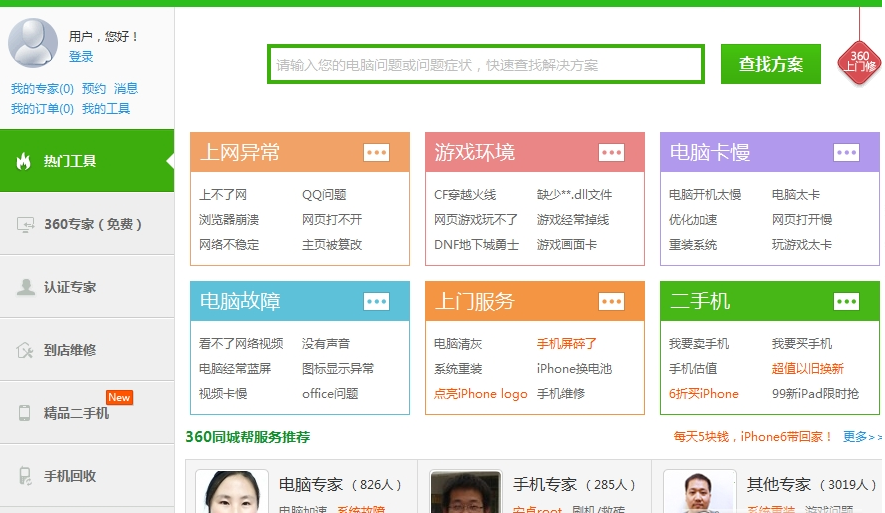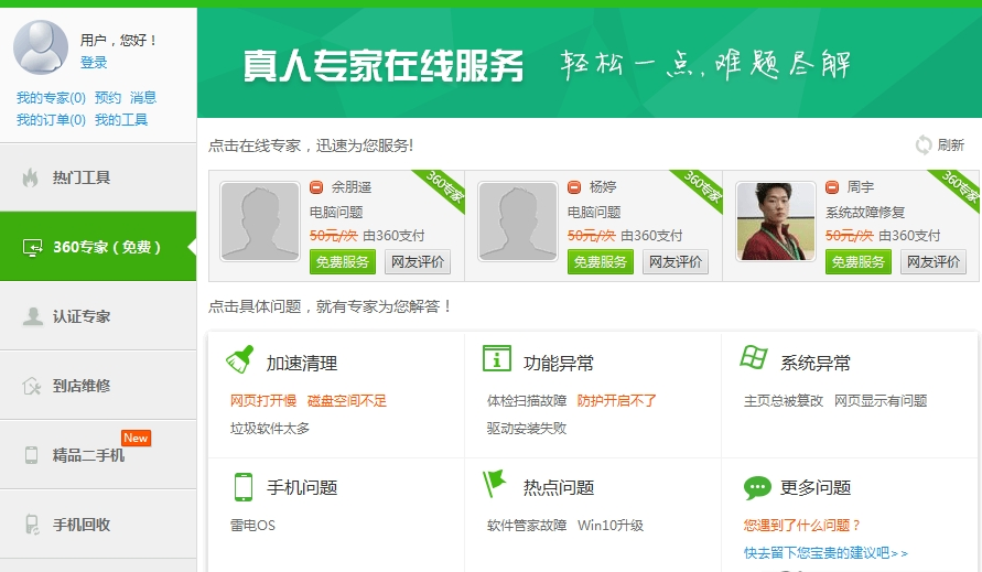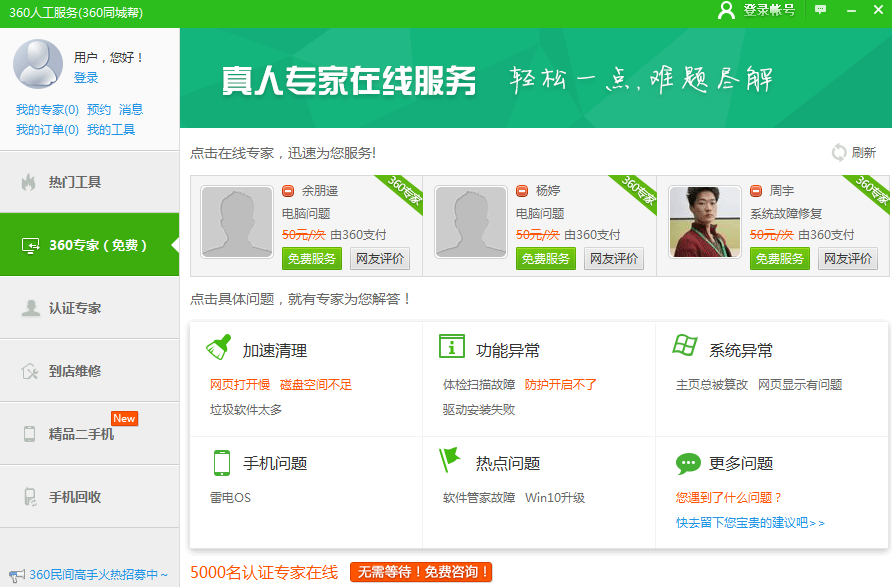 2、出现360人工服务页面,选择360专家或者是认证专家,这里我选择的是认证专家