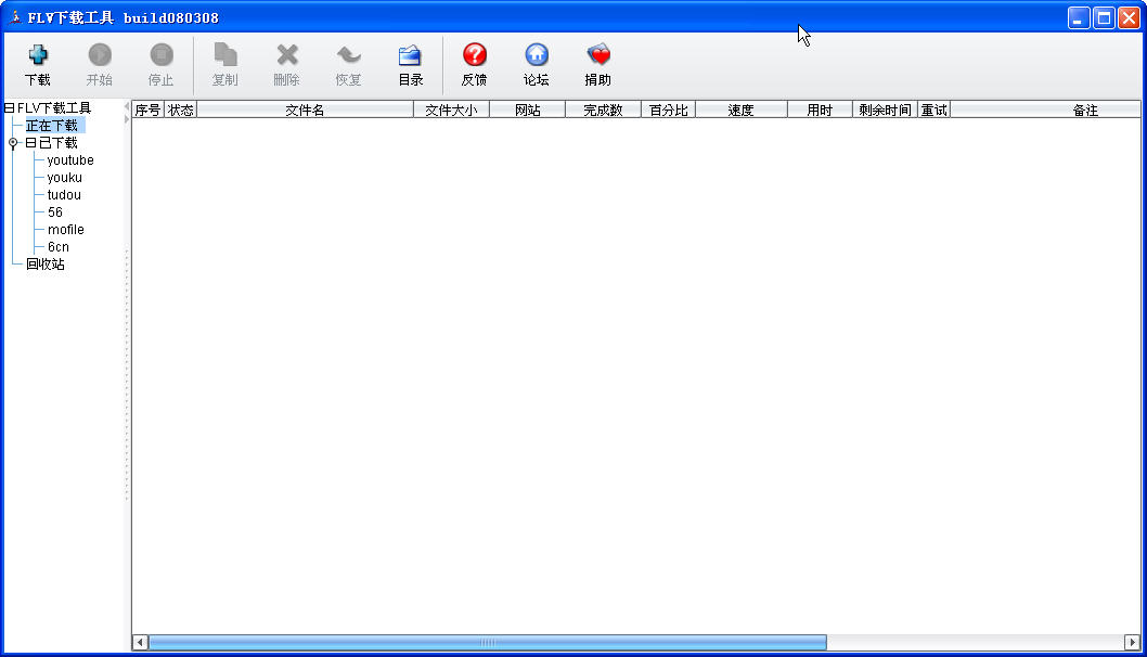本工具可以下载各大flv视频网站的视频文件。目前支持tudou、mofile、六房间、优酷、56、youtube6个网站。下载的flv文件将重命名为flv的主题.flv 支持的网站将陆续添加!注:因本软件采用java技术开发,需要jdk1.6以上或jre1.6以上运行环境,如果你的机器上已经安装jdk1.6以上或jre1.6以上,则下载后即可使用。如果没有请参考http://javasoft.tech.topzj.com/thread-1921-1-1.html进行jre的下载及配置