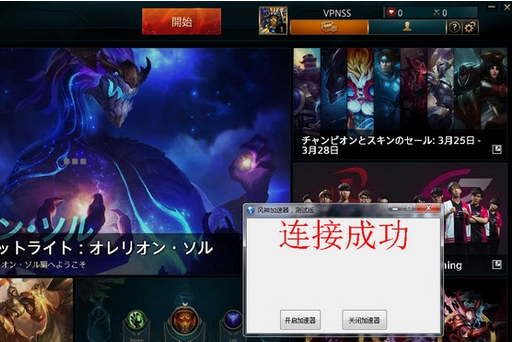 2.点击加速选项后可能一次不同,多点几次,要显示连接成功后在打开lol客户端后可直接畅玩啦!