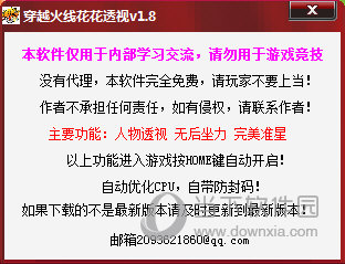 穿越火线花花透视辅助是一款最新研发的cf游戏辅助工具,此款不仅功能强大稳定,而且软件内部自带防封码,自动优化CPU。该辅助为玩家提供了人物透视、无后坐力、完美准星等实用功能,玩家通过该辅助能够轻松取得游戏胜利。