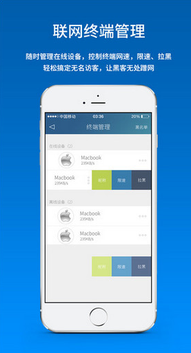 3.终端管理:实时的连接终端详情,修改昵称、限速、拉黑,一应俱全