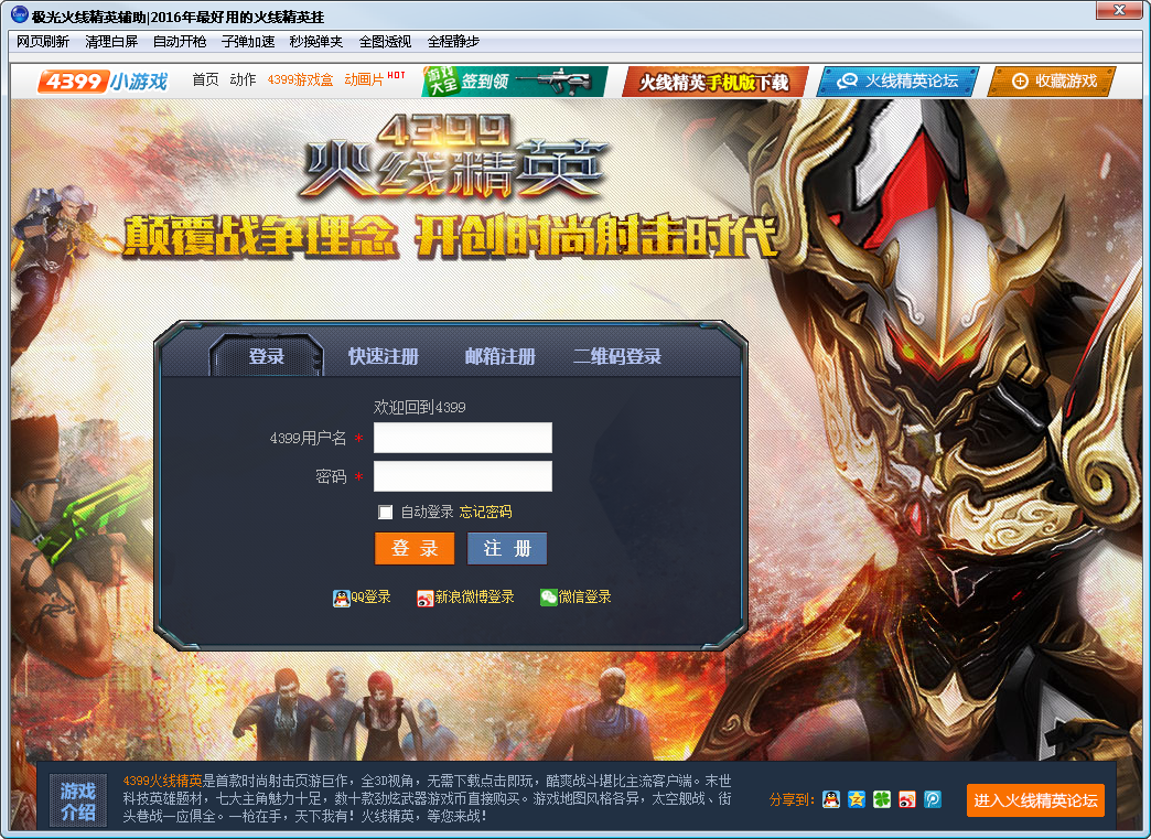 火线精英是一款由4399打造的第一人称射击类网页游戏,可以说是网页版的CF,深受广大玩家喜爱。第一人称射击游戏的网络游戏,玩家扮演控制一名持枪战斗人员,与其他玩家进行械斗。