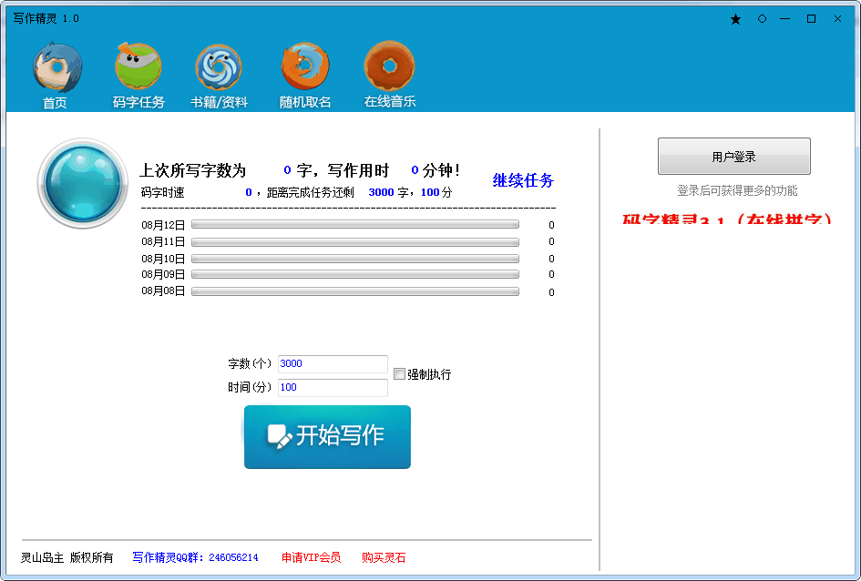1、具备码字精灵常用功能,如锁定、起名、浏览器、在线音乐等 透明写作背景