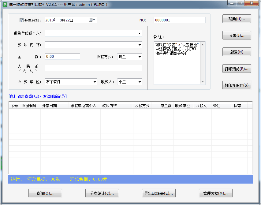 7.可对收据进行保存、修改、删除、查询统计等管理操作。