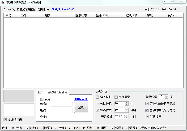 提供的这款QQ安卓协议挂机软件支持批量QQ安卓在线挂机,并可实现自动分批、分点挂机。