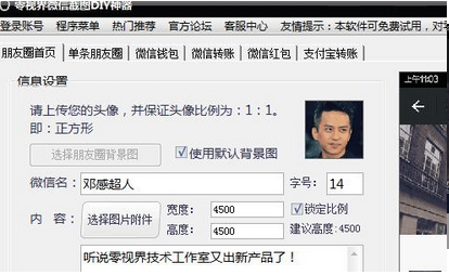 这里给大家分享一款微信朋友圈装逼工具——零视界微信截图DIY神器,这是一款专门用来生成微信朋友圈儿好友动态截图的娱乐软件,你可以把自己的微信好友设置成各种大明星,名人,网络大咖,各种头像名称,时间信息,手机信息,任你填写,一键生成超级逼真的微信截图,完全与手机屏幕1:1,木有任何开发者水印或logo 完全免费,有兴趣的朋友下载收藏吧!