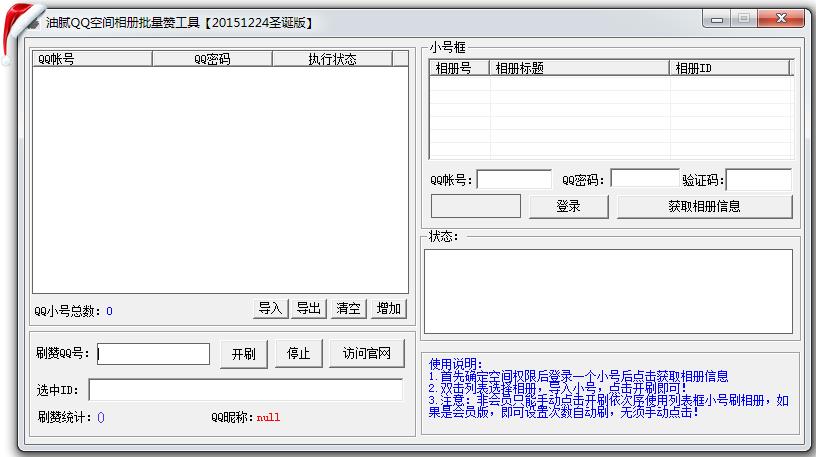 非会员只能手动点击开刷依次序使用列表框小号刷相册,如果是会员版,即可设置次数自动刷,无须手动点击!