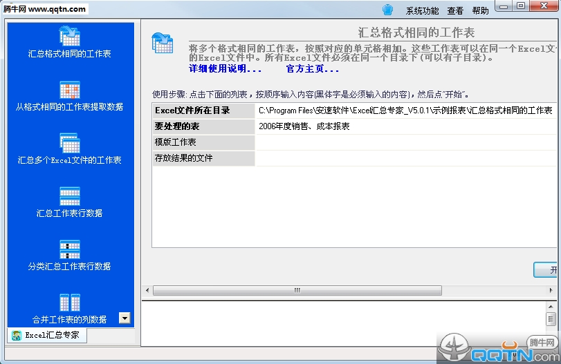 本项功能可以把多个Excel文件内工作表的行数据复制到指定的单一工作表中。