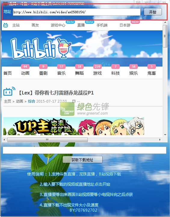 这款龙珠斗鱼B站下载工具,可以轻松便捷的获取龙珠、斗鱼、B站三个直播平台的视频下载地址,用户首选将地址粘贴到地址框中,点击开始后即可获取。
