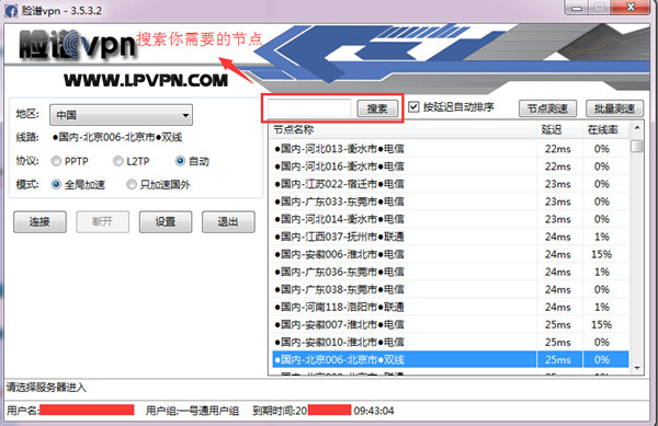 第二步:在此搜索你想使用的地区线路,如果搜索未果则没有此线路。