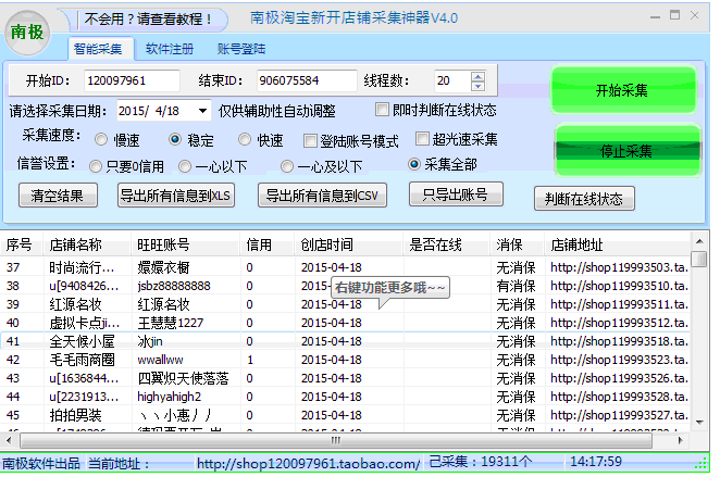 可以按时间采集淘宝卖家,同时能过滤自己不想要的信用级别卖家