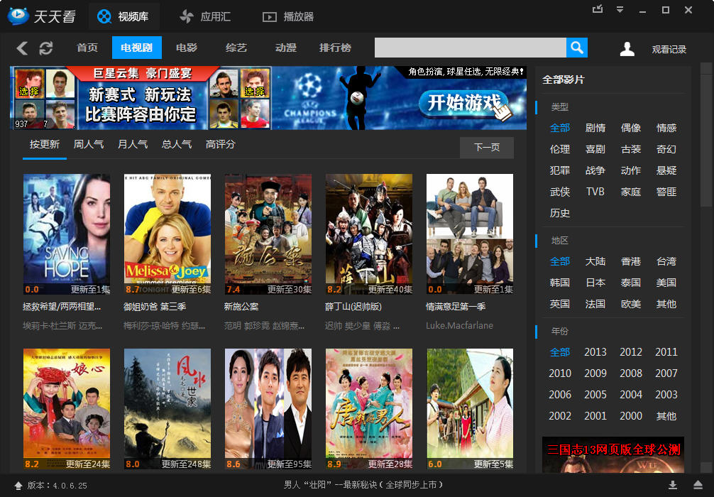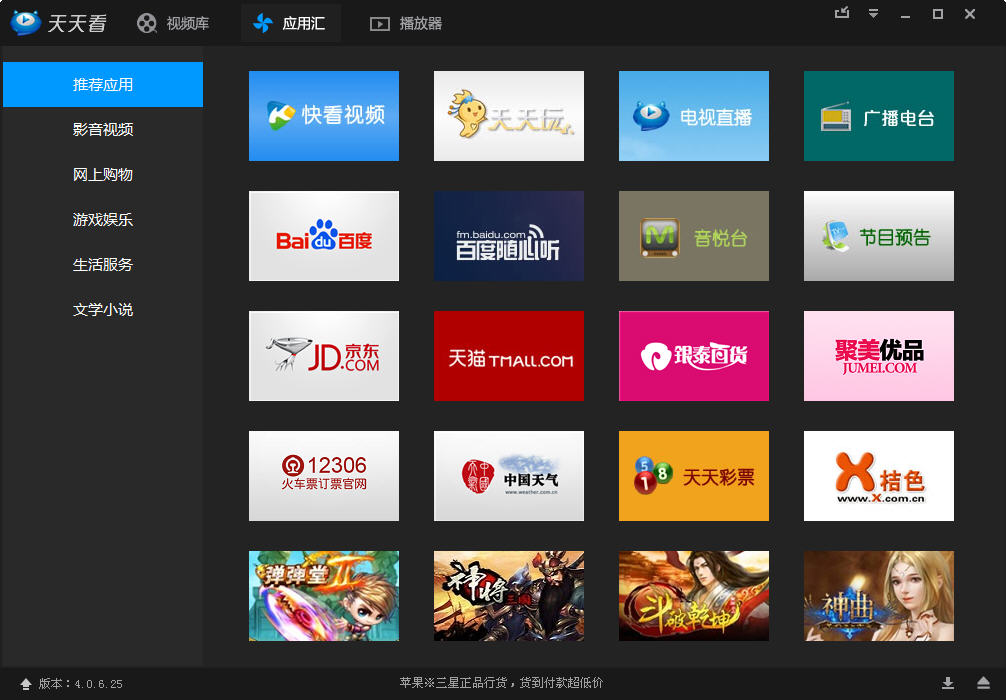 天天看高清影视是一款可在线欣赏视频的客户端软件的客户端软件,让您可以在线享受丰富多彩的直播和点播节目。播放流畅、完全免费,是网民喜爱的装机必备软件