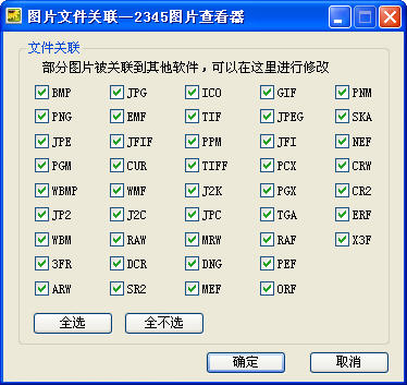 2.勾选图片格式,然后确定,查看此类图片格式则会直接以2345图片查看器打开