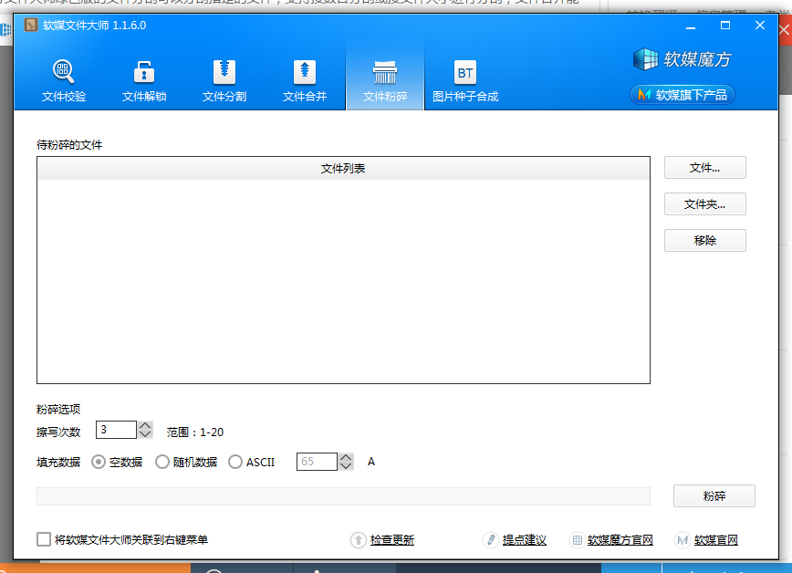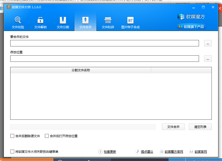 魔方文件大师拥有文件合并、文件校验、文件分割、文件解锁、文件粉碎及图片种子合并。其中图片种子合并能够降低图片储存空间,适合发到论坛帖子,合成只需三步。