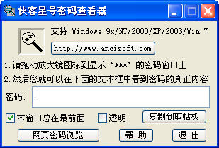 快速查看Windows各种版本系统里普通的密码文本控件里显示的‘***’密码的真正内容。