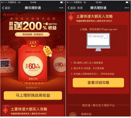 理财通作为服务平台,协助金融机构提供相关金融产品的开户、在线交易、信息查询,以及相关金融业务的支付清算等服务。因理财通不直接提供金融产品,不参与投资,所以不承担风险。金融机构作为金融产品的提供方,负责金融产品的设计以及与购买理财产品的投资者签约履行投资管理服务,并进行资产配置。用户在理财通购买相关金融产品时,需要仔细了解金融产品相关投资风险,充分考虑自身的风险承受能力,依据“买者自负”的原则,独立做出投资决策。