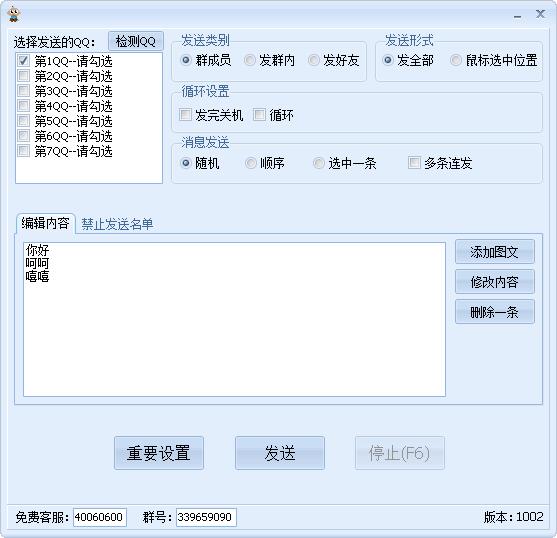 1.可以选择多QQ循环发送。QQ群发器--群发宝