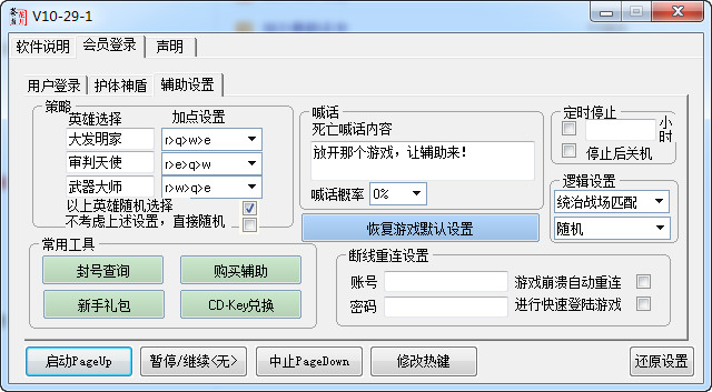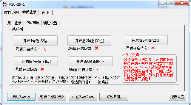 6、启动辅助前务必开好盾,没有开好盾不要挂机!