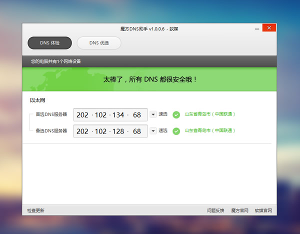 上图:再也不怕电信劫持了,我有魔方DNS助手,还能自动速选最佳DNS服务器