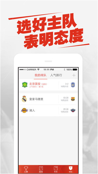 首屏清晰呈现全部热门赛事最新动态,一键看直播,一键关注;左滑选择12大项赛事及全部球队信息;右滑浏览所有关注比赛;摇一摇刷新实时比分;