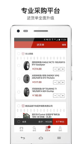 【聪明老板的首选软件】设备不够、轮胎要的急、配件找不到,汽配龙统统帮您解决。上汽配龙,全国各地好货任您挑选,汽修门店采购新方式,告别电话订货,打开软件,点击商品进购物车,结算付钱,货物就会送到您身边,降低采购成本,减轻采购人力,汽配龙,您的首选。