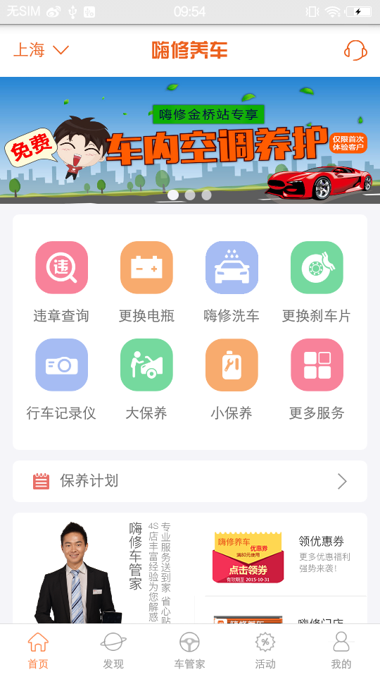 嗨修养车app是专为养车打造的应用,能随时手机查看各种养车服务,支持手机预约上门服务,拥有海量线下门店,更有二手车交易信息,是您养车的好帮手。