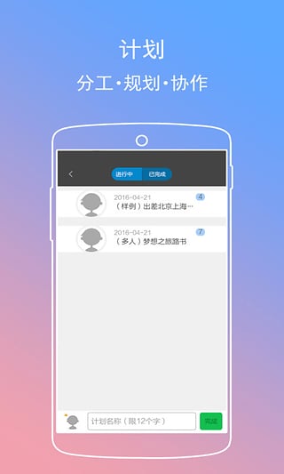 2、一键创建计划模板,步骤详细化计划内容,与好友分工合作共同完成计划;