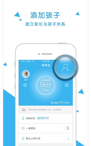 爱熊宝app是专为家长管理孩子上网打造的应用,能随时管理孩子的智能设备,支持对孩子的上网行为进行监控,能自由设置孩子的上网时间,是您管理孩子使用智能设备的好帮手。作为控制端可以控制孩子的多台设备,进行一键锁屏、设置锁屏闹钟等多种方式,来控制孩子的上网时间,帮助孩子养成合理健康的使用网络的好习惯~