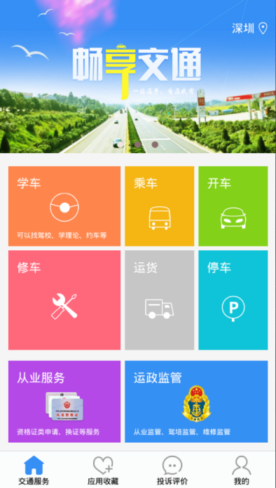 2、统一APP作为应用和服务门户入口,面向消费者提供丰富的应用服务(涵盖学车、修车、客票、运货、出租、公交、从业资格等)