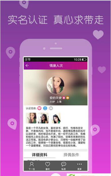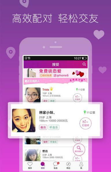 遇爱,高效同城在线找对象平台.为渴望找对象的单身男女而生. 随时利用自己的碎片时间,在任何时间任何地点,第一时间联系心仪的异性,并且可查看近在身边的异性. 千万实名认证会员,让你的缘分来的更容易,遇见爱情就是如此简单!