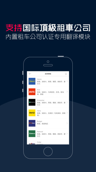 2、Avis、Hertz等国际知名租车公司认证;