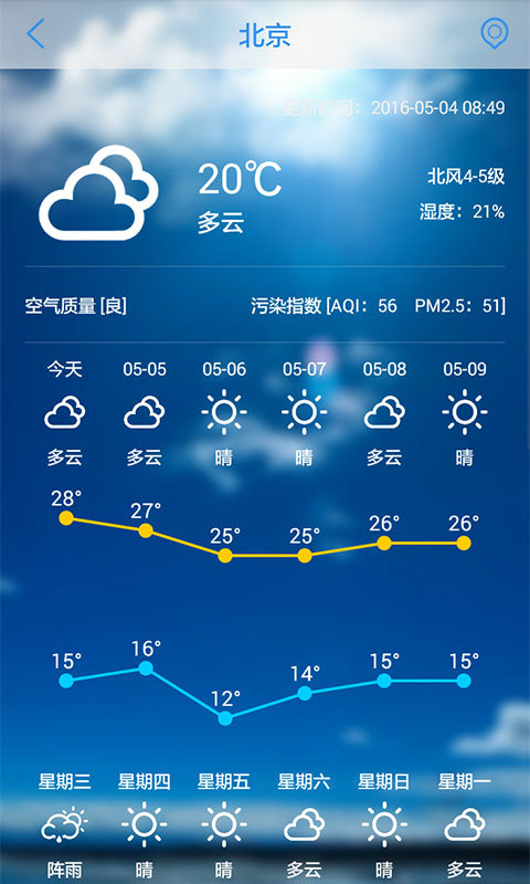 1、包含全国各大中小城市、县市的天气预报,界面流畅美观。