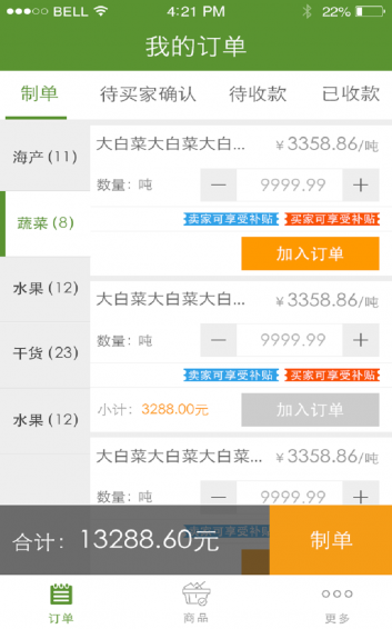 针对农批市场卖家商户的应用APP