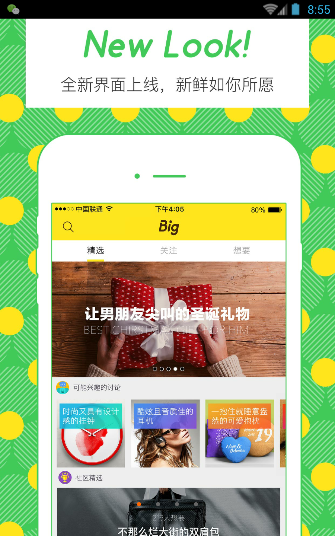 Big是一款可以分享独特品味见解,提出你的心愿,让所有人一起出谋划策的潮流社交平台,通过该软件可以创作专栏画报,记录美好生活旅程。发现各类达人异士,如摄影师、大厨、设计师、旅行家...每个人都可以成为生活中的超级英雄;推选最佳优质商品,汇集所有人的经验和意见,选举当下最赞好物。