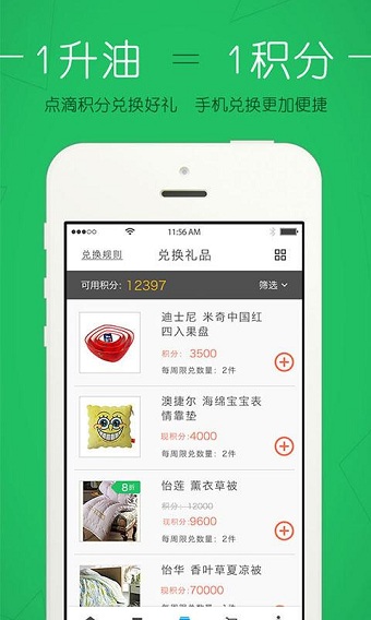 移动电源、汽车导航仪、行车记录仪、爱国者摄像机、联想笔记本……N多种礼品免费兑换,总有你想要的,还在等什么?想要就用加油积分来兑换吧,每个月还能抽奖,神马礼品都有可能抽到的哦!