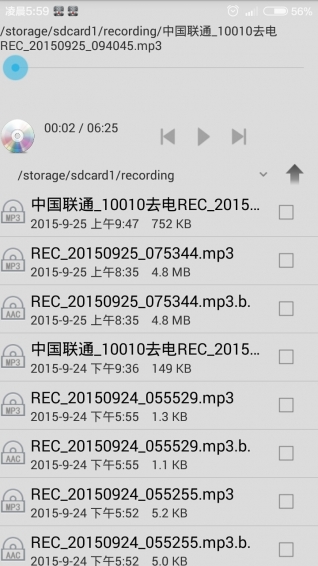 支持多达8种录音格式包括流行的mp3格式(mp3, amr,mp4,3gpp,aac,wav,m4a,speex)
