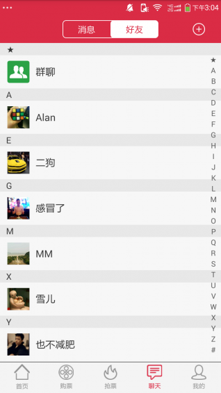 新增聊天陪看功能,选择周围的好友,一起去看电影