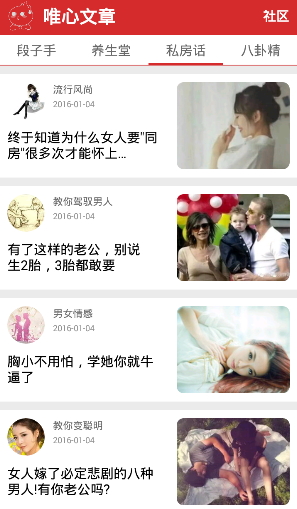 1、唯心文章,聚合各大“微信公众号文章”,涵盖:热点、新闻、段子手、八卦精、财经迷、汽车迷、科技咖、潮人帮、 辣妈帮、点赞党、旅行家、美食家、体育迷;