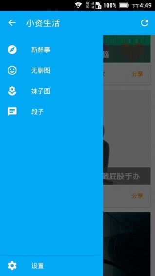 小资生活app是一款阅读类软件,在各种信息让人应接不暇时,小资生活app为用户精选信息,根据用户浏览兴趣,推荐阅读内容,这里主要提供新鲜事,无聊图,妹子图和段子,选择你喜欢的,轻松阅读吧!