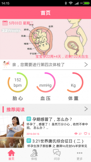 3、远程胎心监护,孕妇血压、血糖、体温、体重、血氧等常规项目的体检