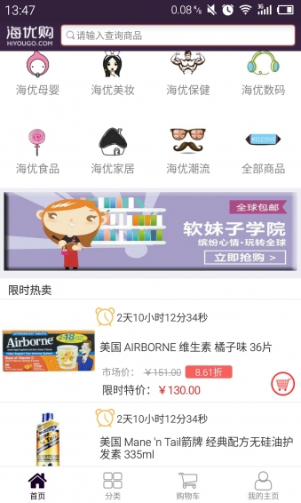 海优购安卓版是一款专门为用户提供海外货物的海淘app,简化了海淘用户在购买海外物品的繁琐操作。