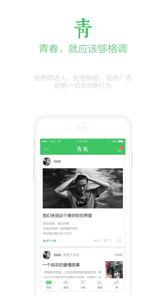 靑 - 青春,就应该够格调--拒绝附近人,拒绝刷脸,拒绝广告,拒绝一切无B格行为