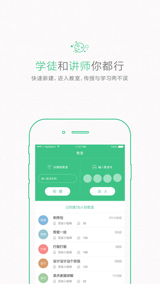 教室功能: 创建一组用户群,把 更多用户聚集在一起,其他用户在各自的手机上查看演示方的