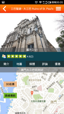 豐富多媒體內容資訊,景點及商戶地圖位置指示,即時衛星路線導航,隨時查詢附近商家資料及優惠支援把景點或商戶加入我的最愛,方便隨時快速查詢,結合地圖功能即可建立自己的行程