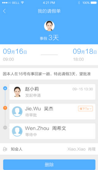 2、提供业务覆盖组织人事、休假管理、考勤管理、社会福利、薪酬工资、协同办公等功能;