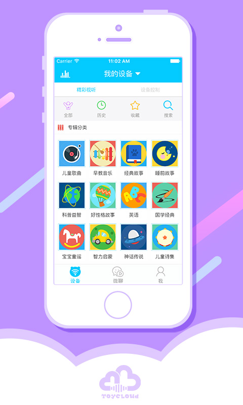 2.可以在微聊组中绑定各种智能设备,宝宝只要用玩具就可以与家长互动哦!