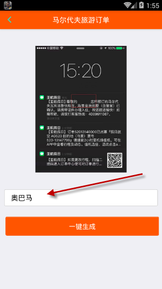 马尔代夫旅游订单生成器是一款以去马尔代夫旅游的订单生成器,在马尔代夫旅游订单生成器中小伙伴只需要填写姓名即可生成订单,马上就五一了,这款操作非常简单的装逼神器可以拿出来晒晒啦,人活着不装逼会死的哦!