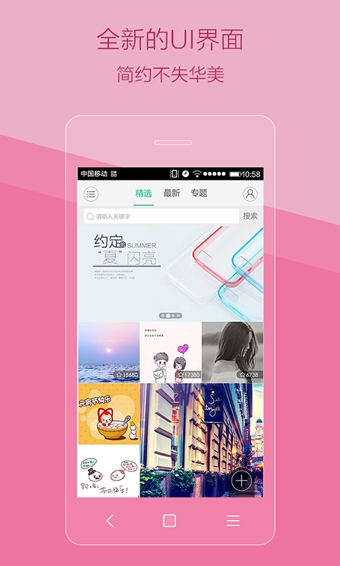1.社区分享,随时上传自己的个性图片,千万用户一起共享